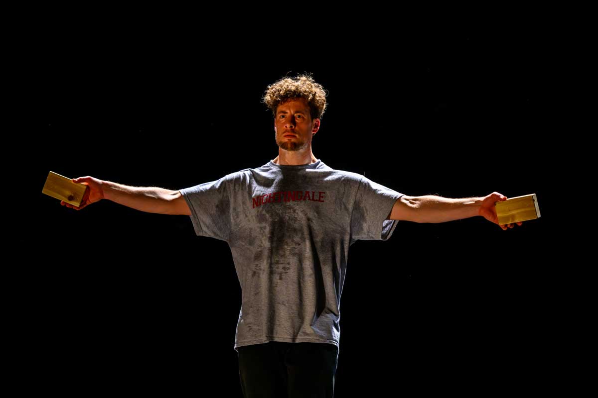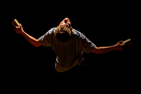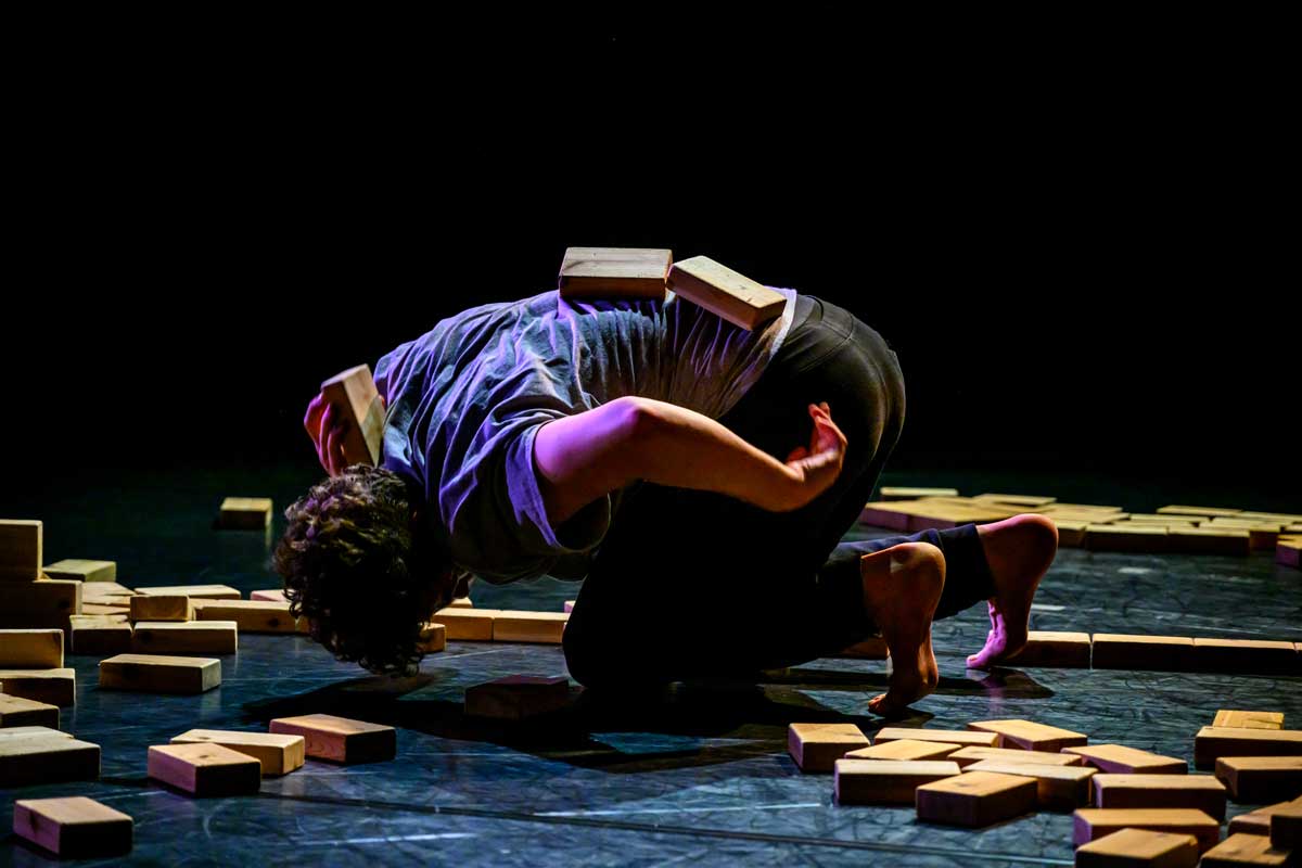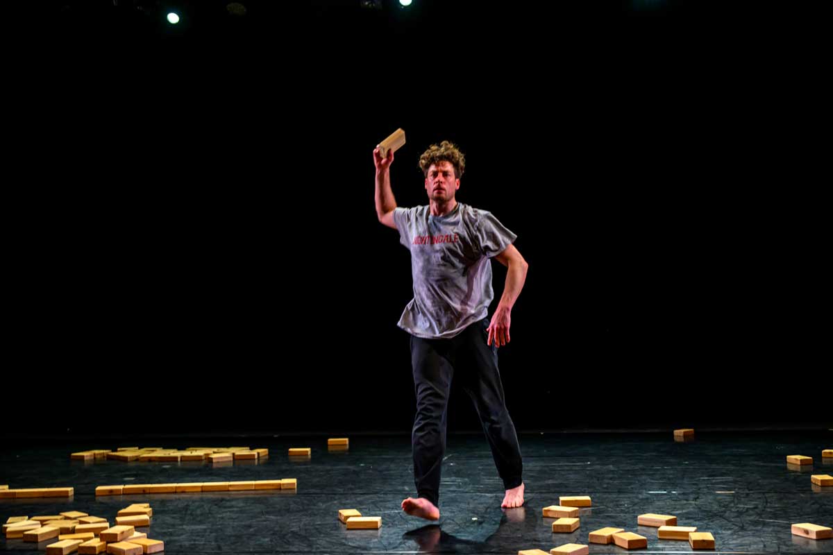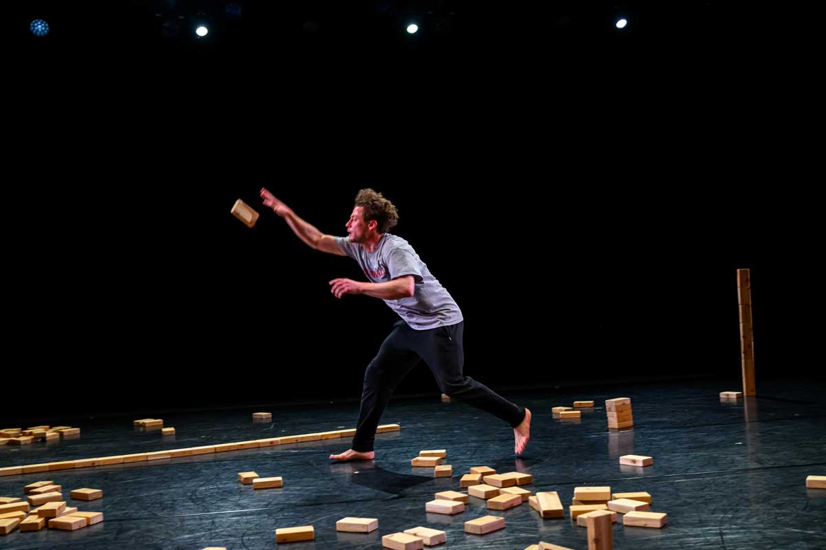 With serendipity, rigour and ingenuity, dance artist Josh Martin performs a solo together with 250 small cedar blocks. Moments emerge and transform: whimsical, primal, risky, futile and tender. Balance is fragile, tested, and there are no mistakes. Composer James B. Maxwell and lighting designer James Proudfoot frame and hold Josh with their sound and light, expanding and condensing his world. Developed through a collaboration with Josh that has spanned four years, blocking reveals the body, breath and stillness.